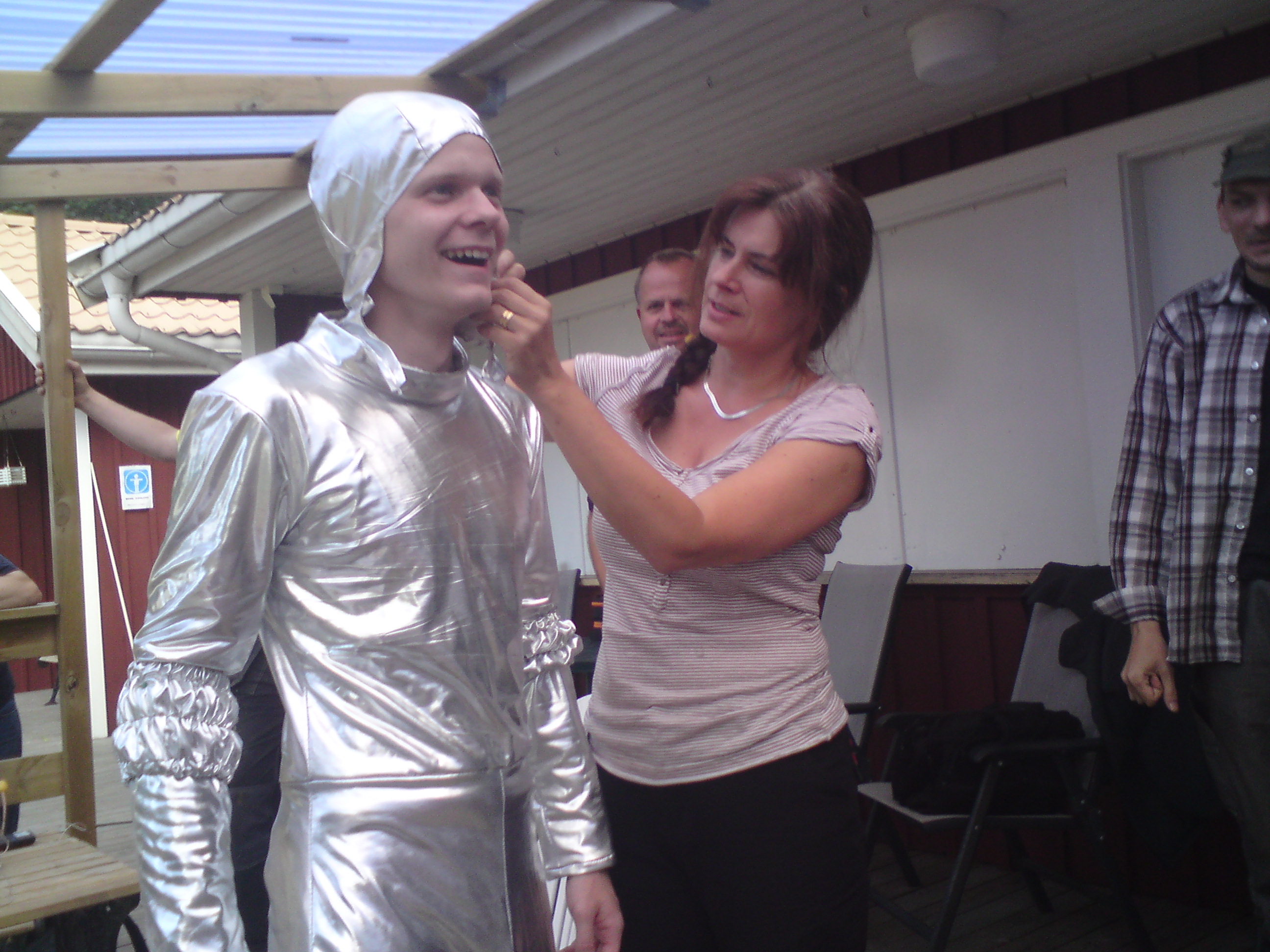 Under kostymören Kerstins granskande ögon och nålande fingrar har idag några av huvudrollsinnehavarna fått en glimt av hur de kommer att se ut när de inom kort ska ikläda sig rollen som Det fega Lejonet, Hunden Toto, Den hjärtlöse Plåtmannen och Den hjärnbefriade Fågelskrämman.