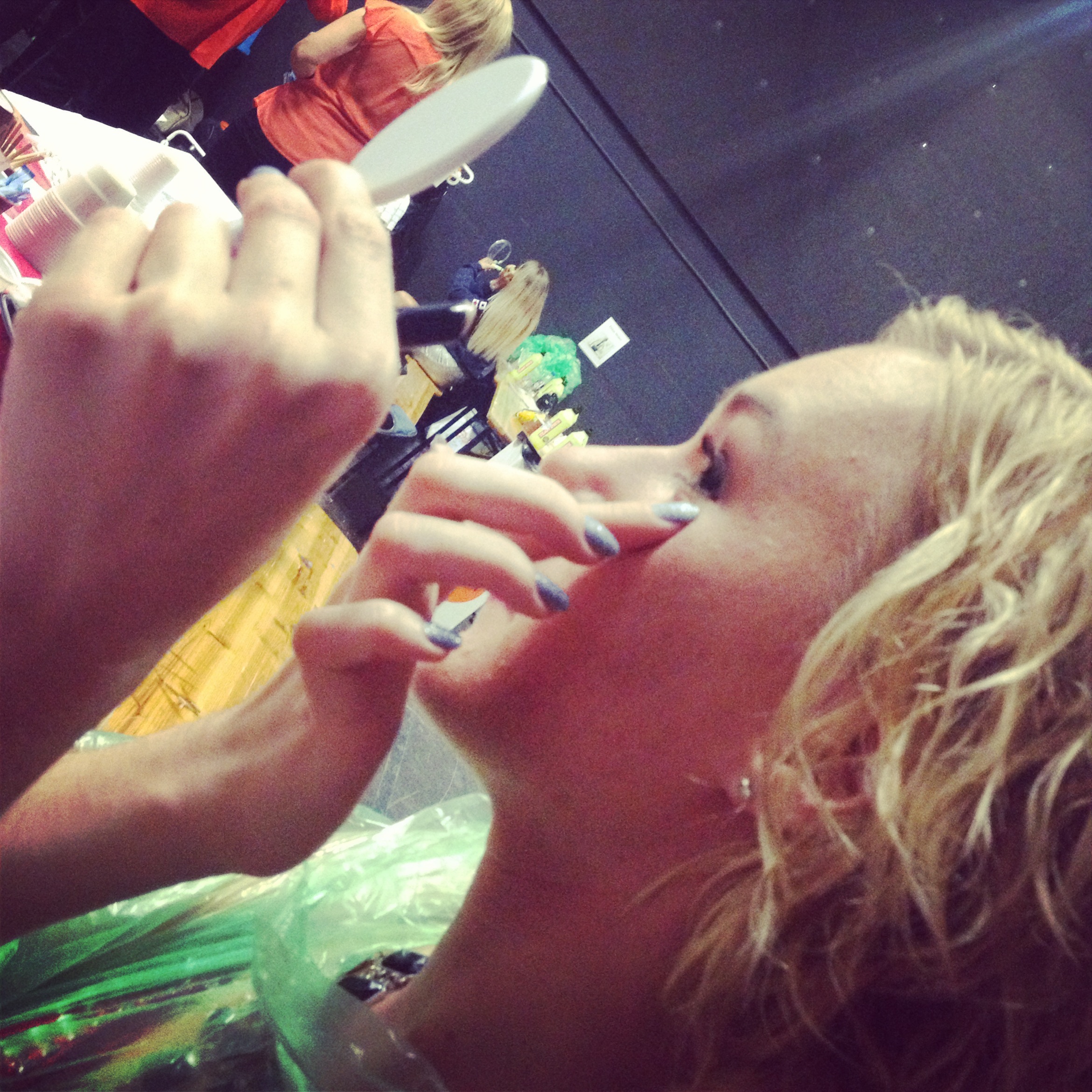 Det blir mycket sminkande och fixande inför varje program. Även om vi får hjälp med smink och hår går det ibland snabbare och lättare att göra det själv…