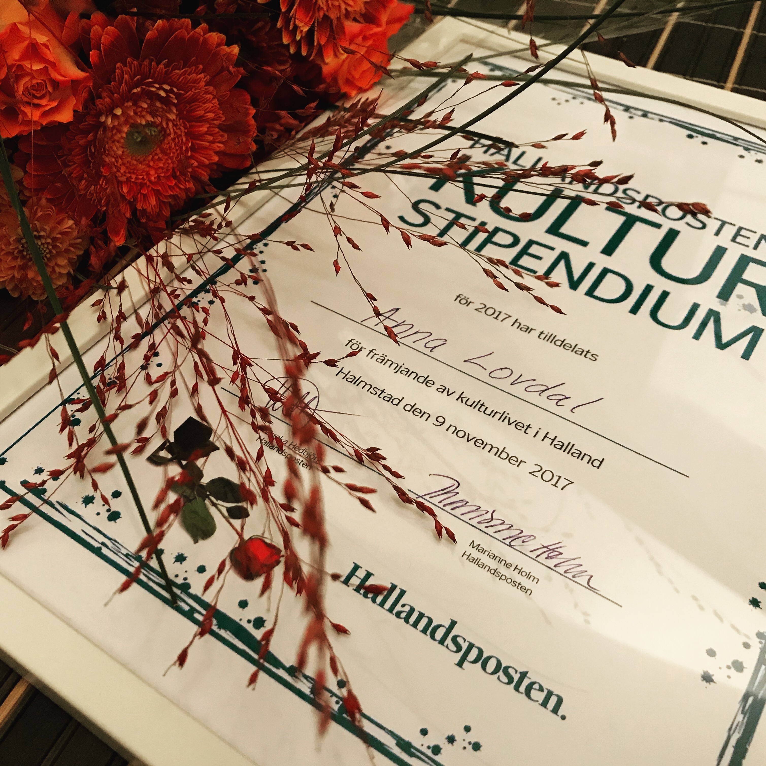 Förra veckan hade jag det stora nöjet att emotta Hallandspostens kulturstipendium. Så fantastiskt roligt att ens arbete blir uppmärksammat och uppskattat!